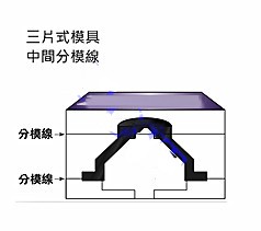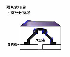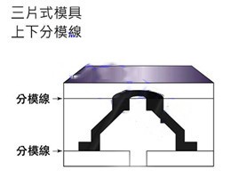 3. 有時產品可能較為精細或太硬,不易從兩片式模(mó)具完整取下;叁片式模具可解決此一問(wèn)題。