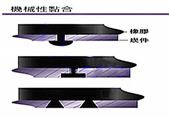 機械性黏合:指成型時軟化變形的橡膠材料,包覆或(huò)流入空隙區間所產(chǎn)生的接合。